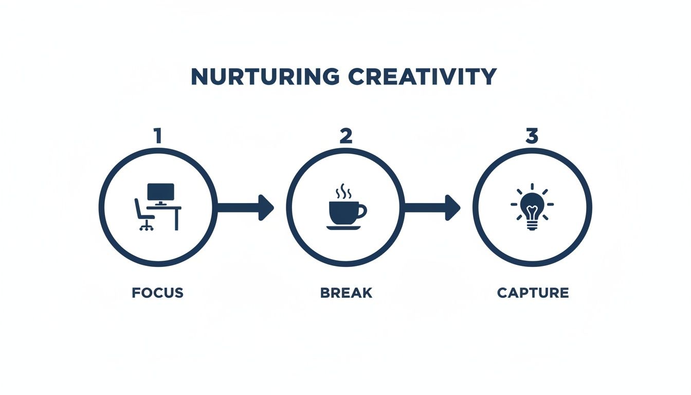 At its core, creative block is often just mental exhaustion. The research is clear: intense, focused work can drain our creative capacity. It’s a problem compounded by the fact that 60% of creatives say they have great ideas but simply don't have the time or energy to act on them, according to a study on productivity trends.