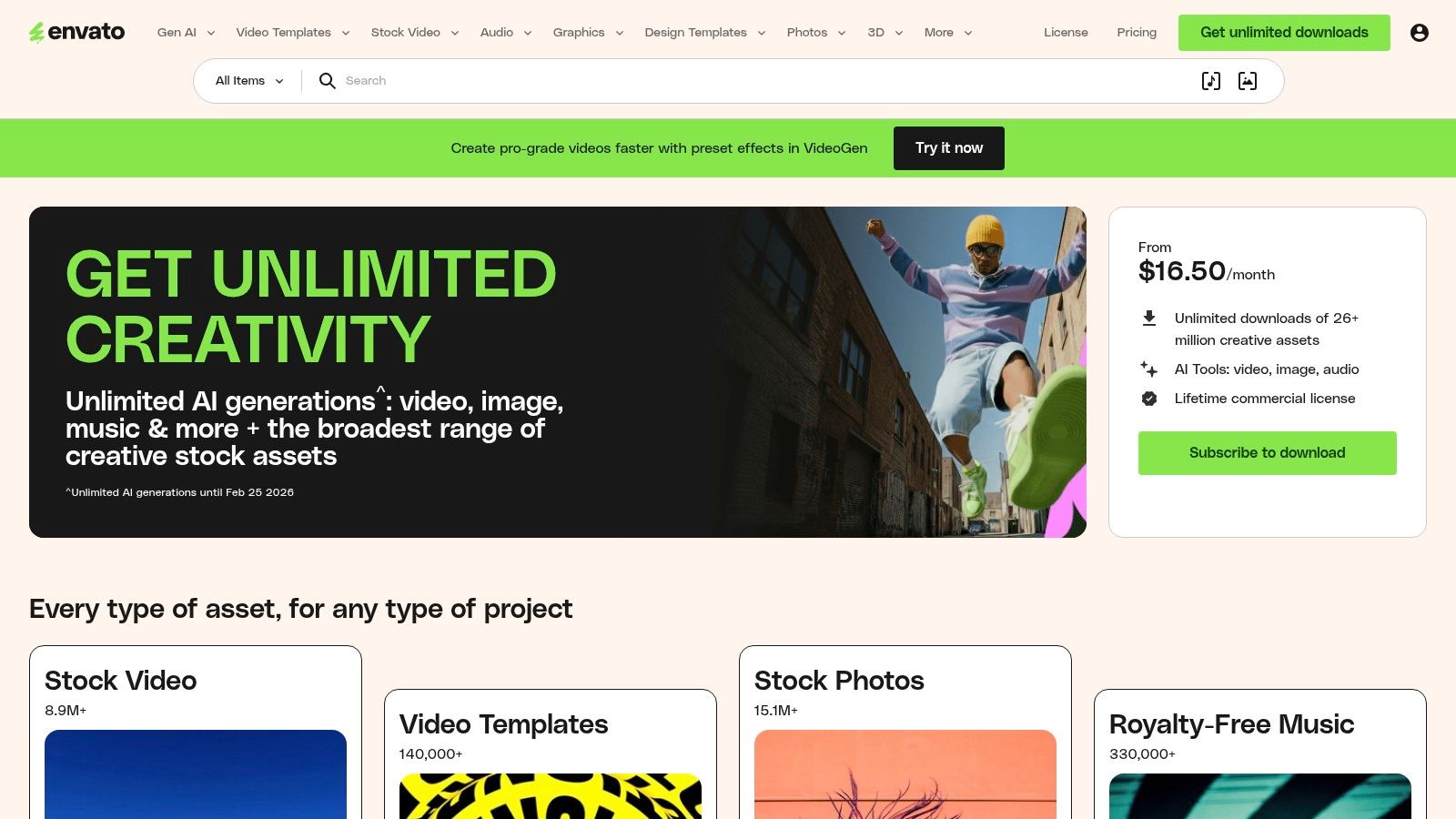 - Individual: Starts at $16.50/month (billed annually) for unlimited downloads.