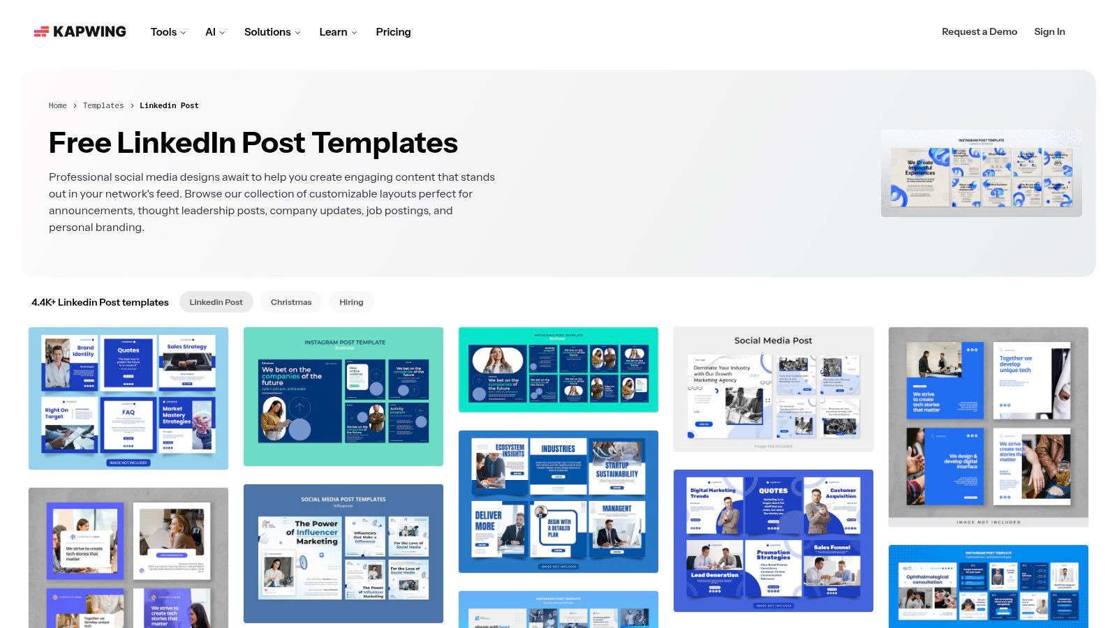 Best For: Solopreneurs, content creators, and small marketing teams who need a fast and easy-to-use LinkedIn infographic maker for creating individual posts and static graphics without a steep learning curve. Find out more at https://www.kapwing.com/templates/linkedin-post.