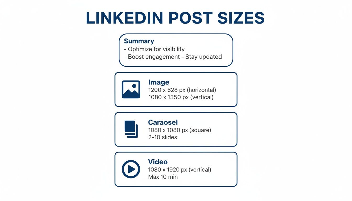 Let's cut to the chase. Getting your LinkedIn image dimensions right is one of the easiest wins for making a strong first impression. When an image is blurry, or the key part of your message gets chopped off, you've lost the battle for attention before anyone even reads your copy.