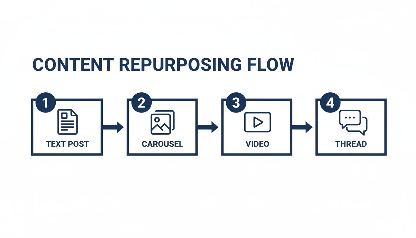 As you can see, a concept can start as a text post, evolve into a visual carousel, get turned into a short video clip, and even become a detailed thread. You're maximizing its reach and impact every step of the way.
